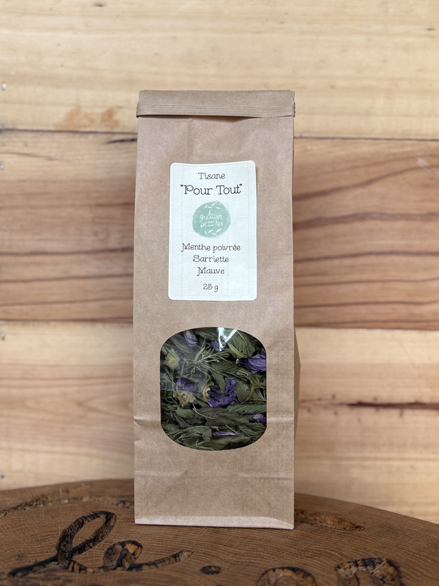 Ingrédients : Menthe poivrée*, sarriette*, mauve*